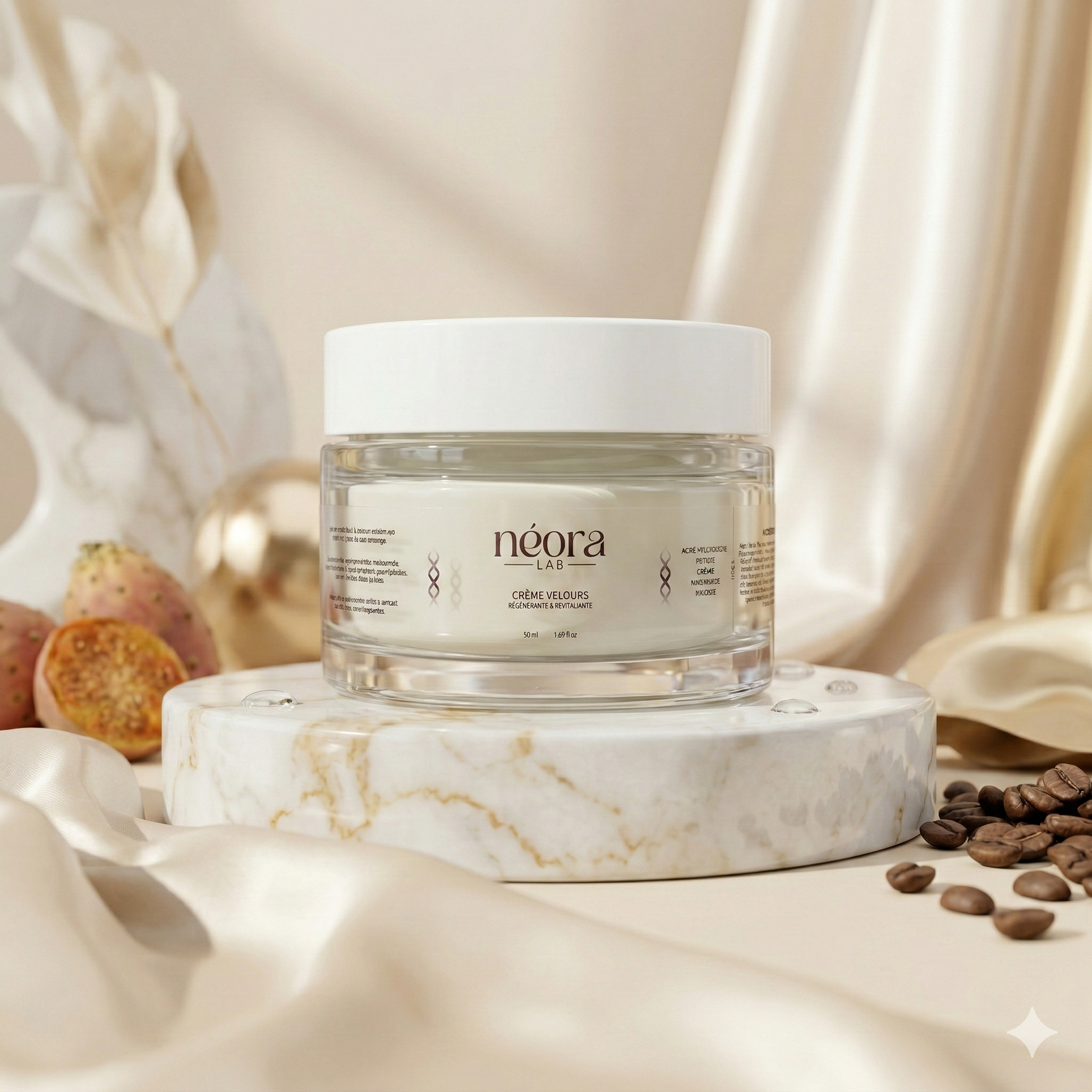 Le C-Boost Sérum prépare la peau et apporte de l'éclat, tandis que la Crème Velours hydrate, régénère et prolonge les bienfaits. Ensemble, ils forment le rituel complet Néora.